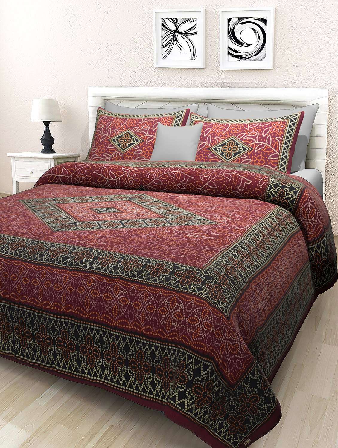 180 TC Double Size 100% Cotton Screen Print 85 x 95 Inches( & - 5%) Double Bedsheet with 2 pillow covers