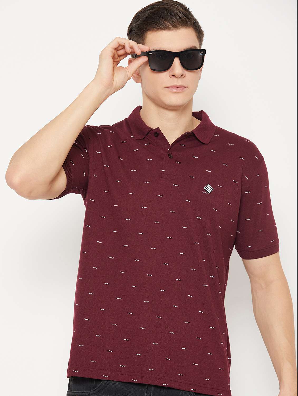 - » maroon micro printed polo t-shirt
