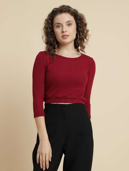 - » women solid long sleeve crop top