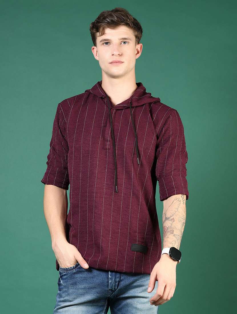 men striped long sleeve regular fit casual shirt