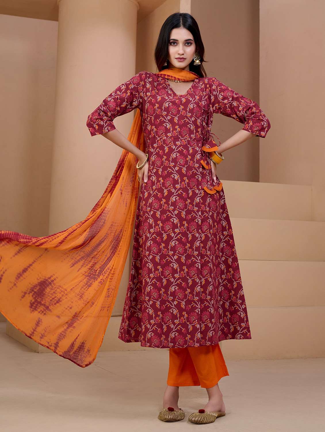 - Find gorgeous sets of ethnic wears in trending designs in maroon colors suitable for casual wear of occasions.