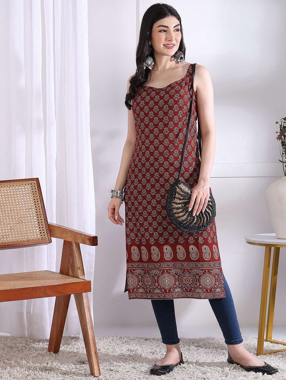 - Grab this beautiful kurta made up of cotton fabric featuring shoulder strap neck designs.