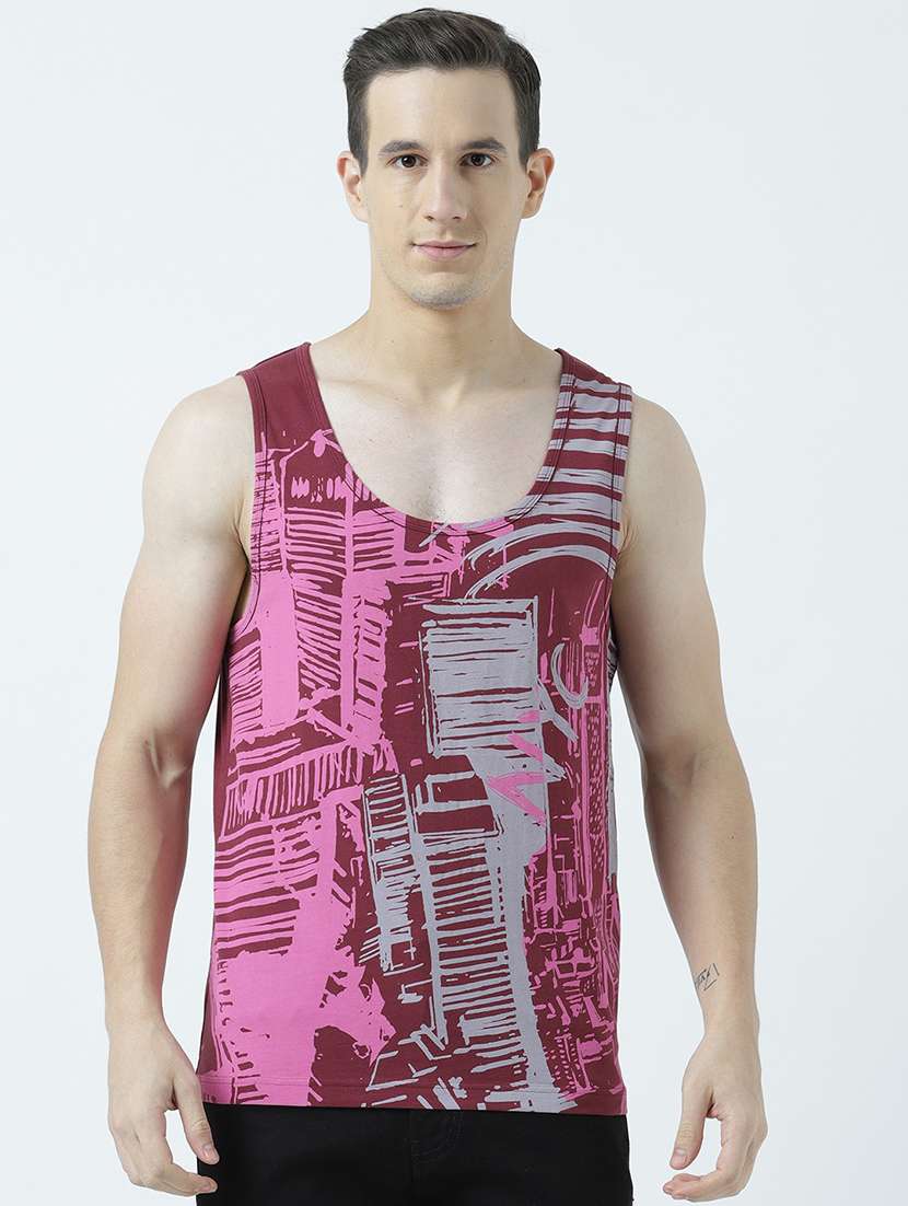 - » men scoop neck front print sleeveless t-shirt