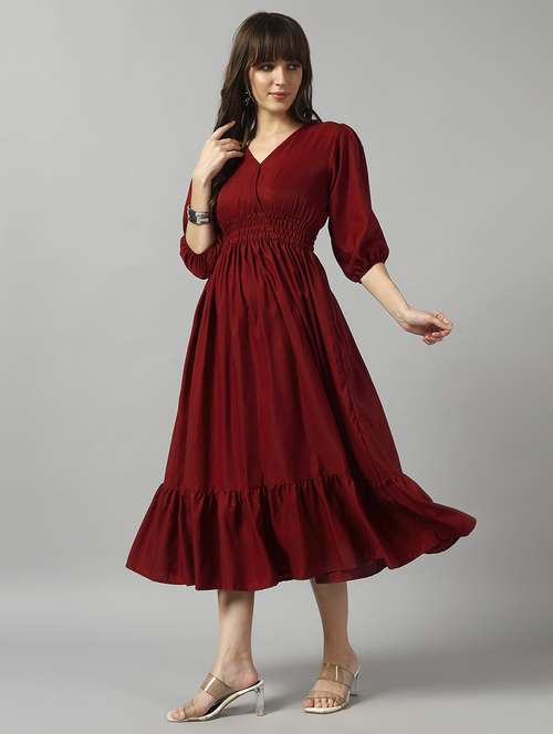 - Looking for some awesome collection of dresses? Well, lay your hands on this dress from Jash Creation and also get the option of choosing from maroon colour.