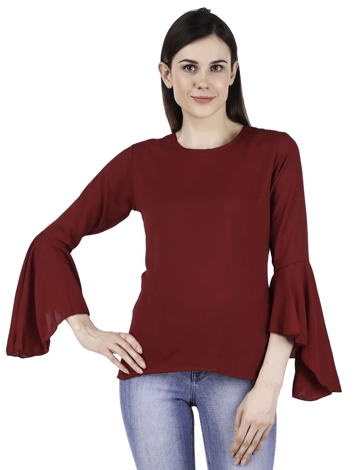 - Opt for this top made up of crepe material and get it in a round neck design.