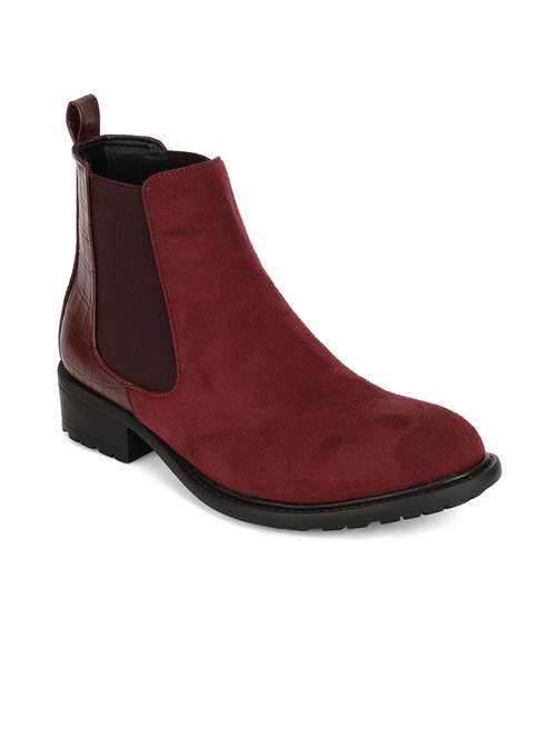 maroon faux leather ankle boots