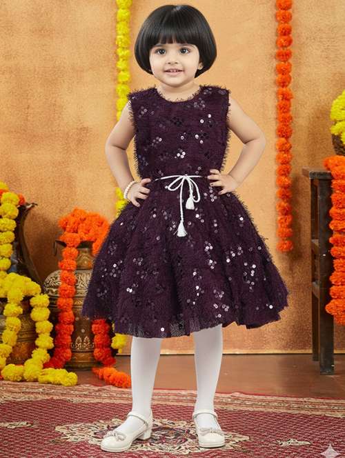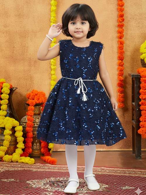 - » kids solid with work round neck dress