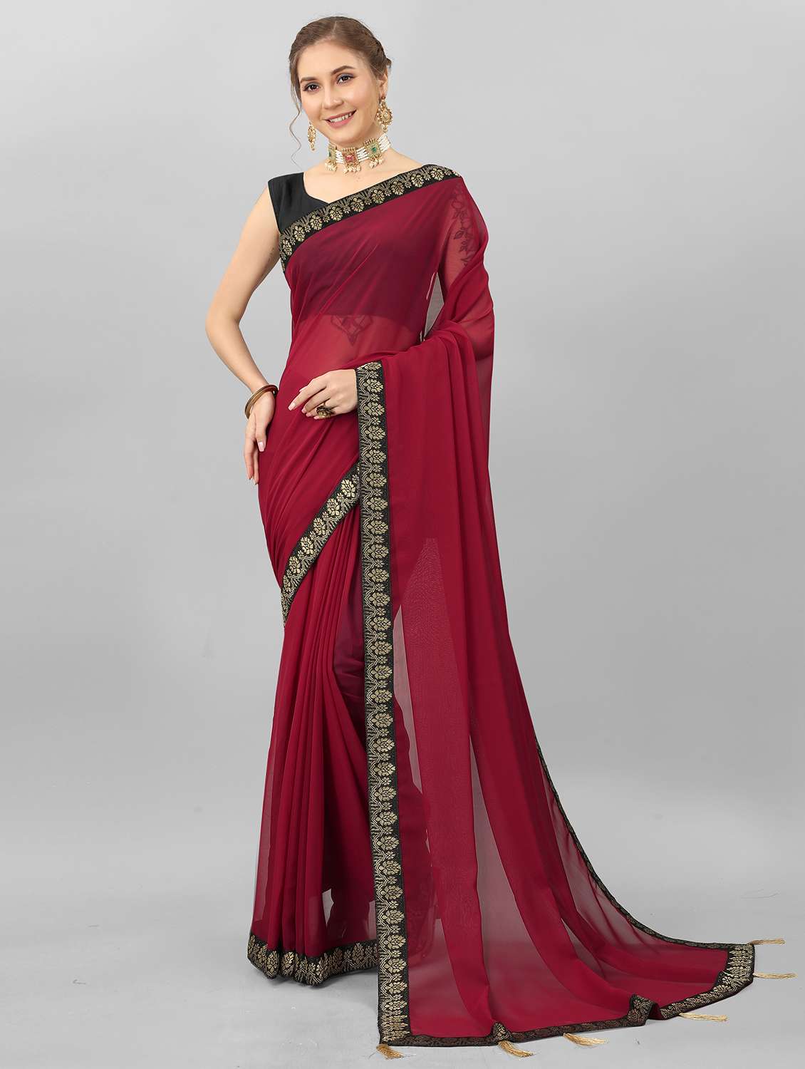- » georgette plain saree with plain blouse with blouse