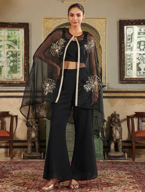 - Browse through the latest range of ethnic sets for women with tailored sleeve designs with embroidered works.