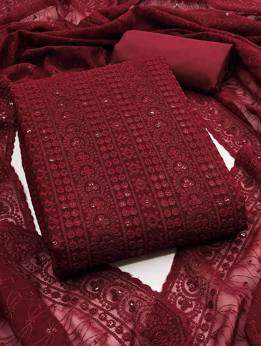 - Look ultra gorgeous in unstitched suits from Peachmode and grab these beautiful suits in maroon colour.