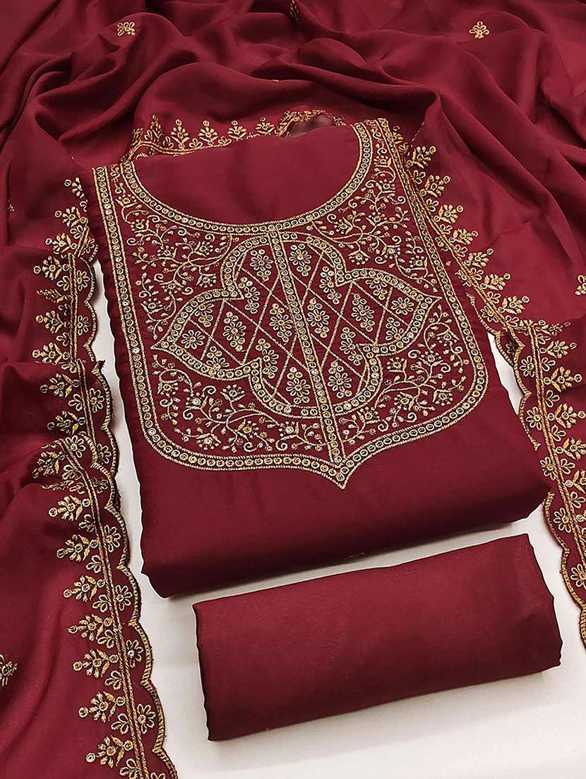 - Look ultra gorgeous in unstitched suits from Peachmode and grab these beautiful suits in maroon colour.