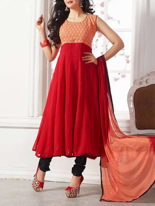 - » maroon georgette embroidered anarkali dress material