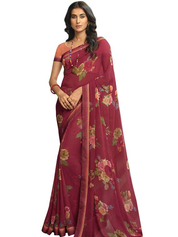 - » women's floral maroon colored saree with blouse