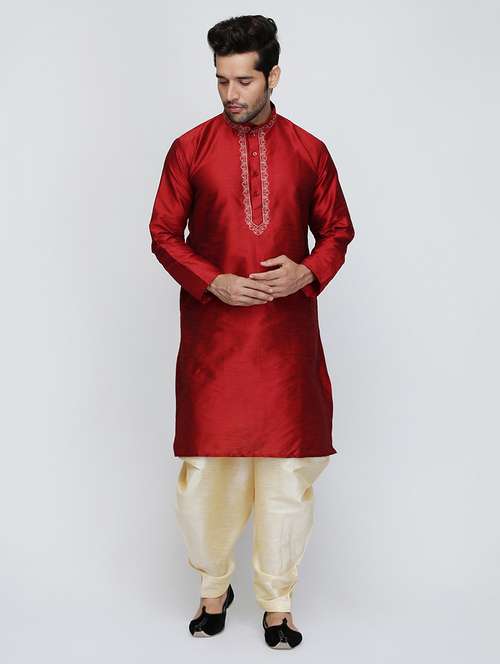 men solid mandarin neck dhoti kurta ethnic wear set - 22000693 - Very Small Image - 1