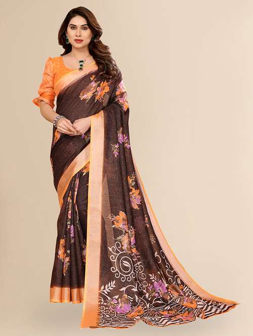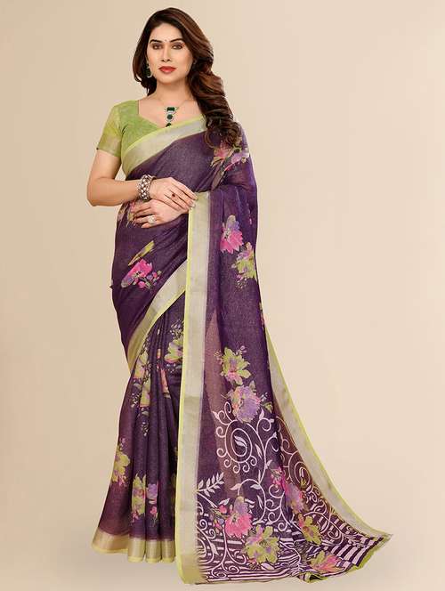 Zari Embellished Design – Intricate zari work brings a festive and luxurious touch. Cotton Blend Fabric – Soft, breathable, and comfortable for all-day wear. Floral Print Pattern – Elegant and timeless design suitable for various occasions.Satin Patta Border – Gleaming satin finish with embellished border for a rich look.