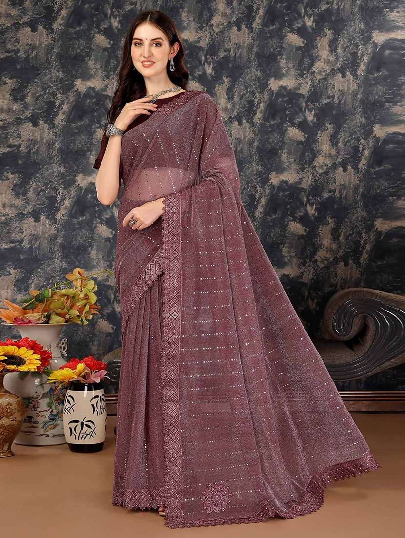 women solid with work embellished saree with blouse - 22228505 - Very Small Image - 1