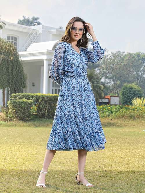 - Dress up in a soothing pattern and don this dress made of polyester material.