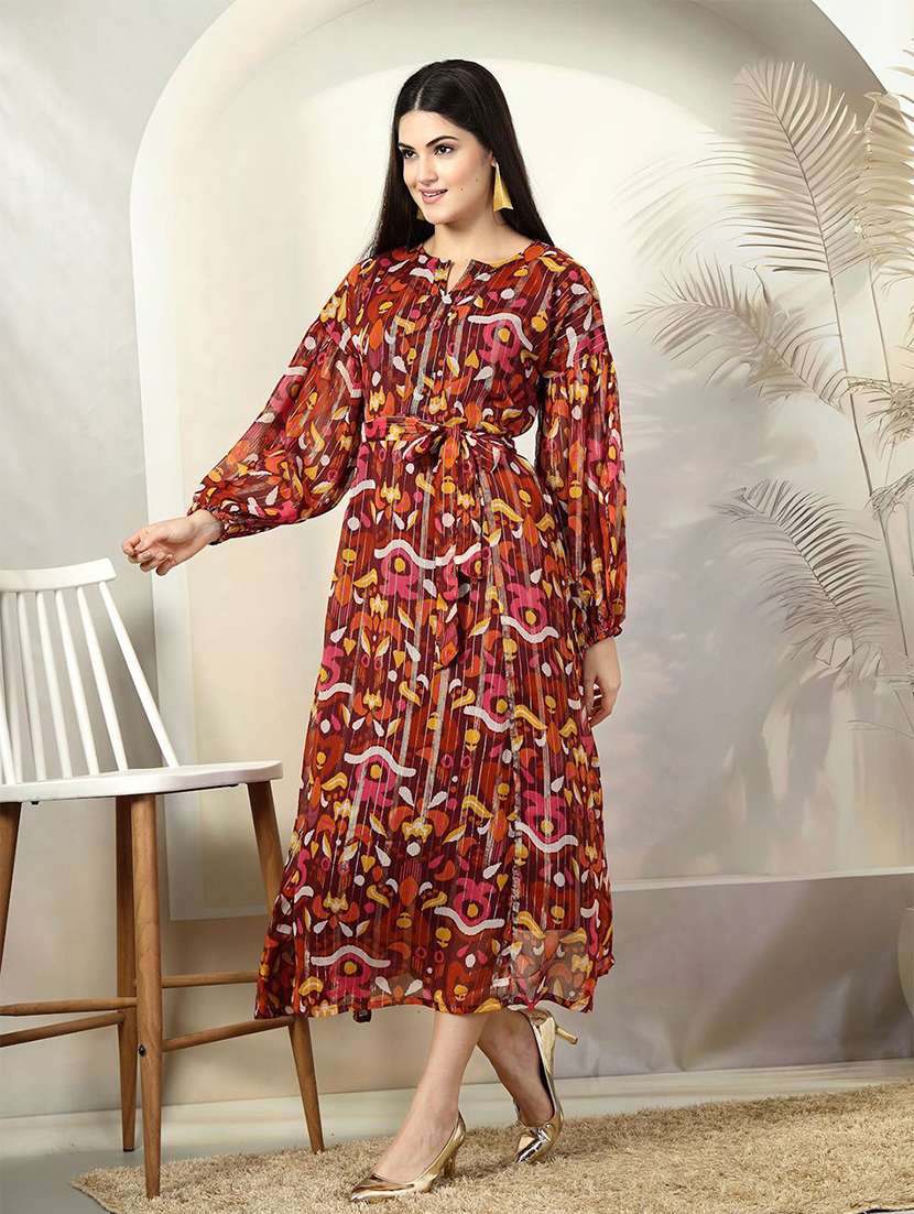- » women maroon printed a-line dress