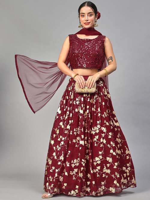 - » maroon colored flared lehenga