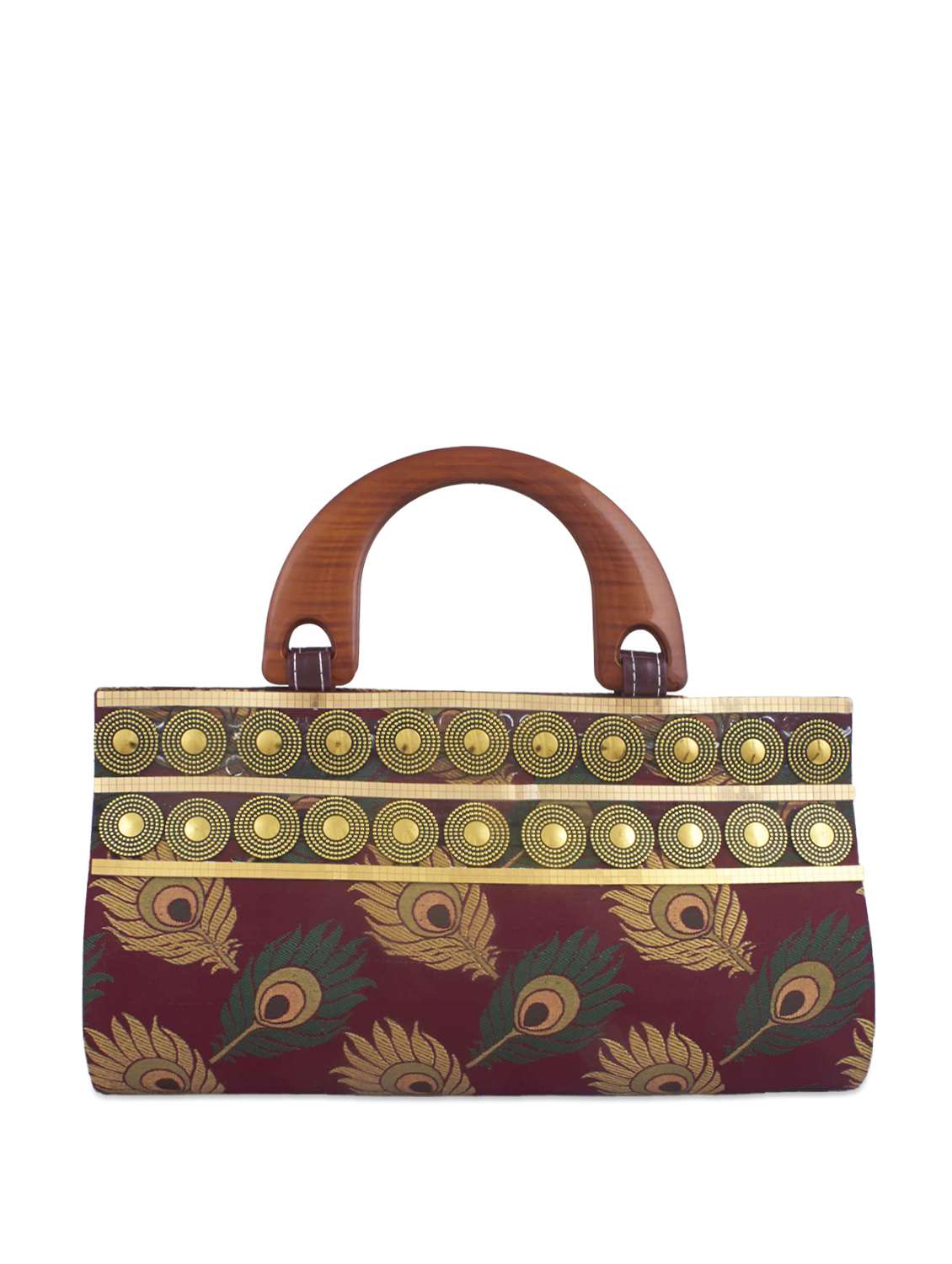 - » maroon peacock feather patterned clutch