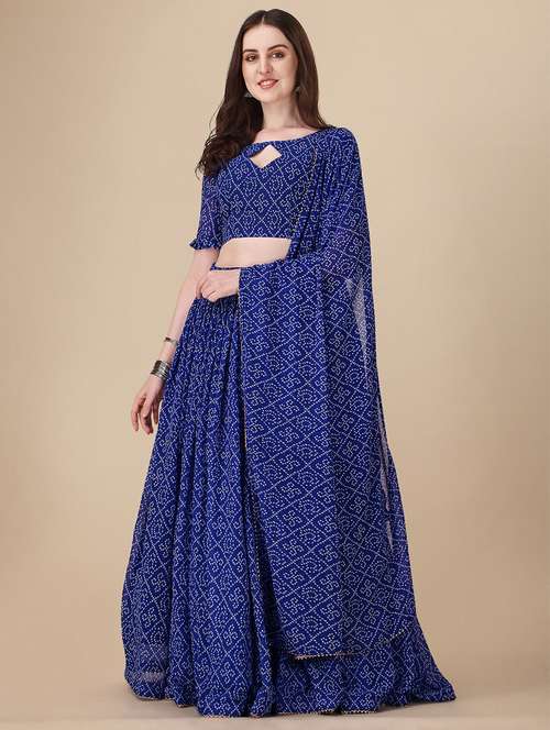 Momina Fashion Bandhani, Printed, Geometric Print, Digital Print Semi Stitched Lehenga Choli