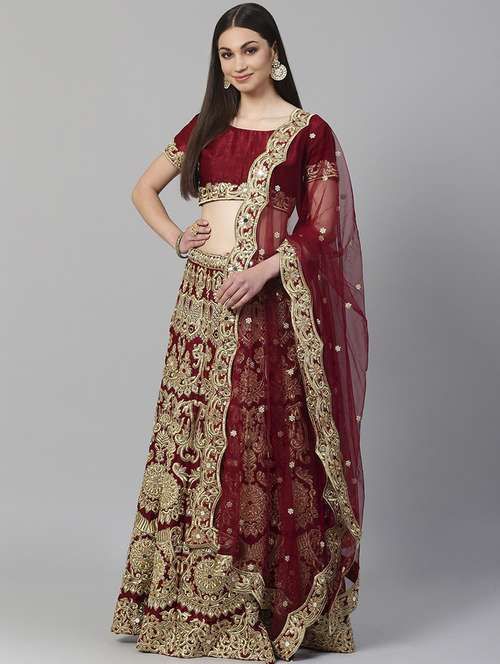 - » maroon poly silk aline lehenga