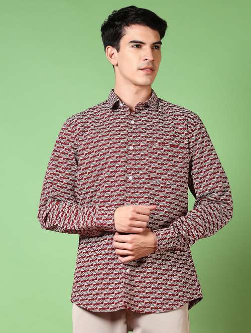 men printed long sleeve regualr fit casual shirt