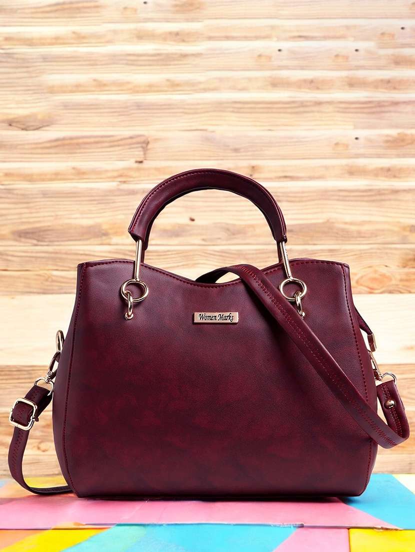 women solid handbag with detachable strap