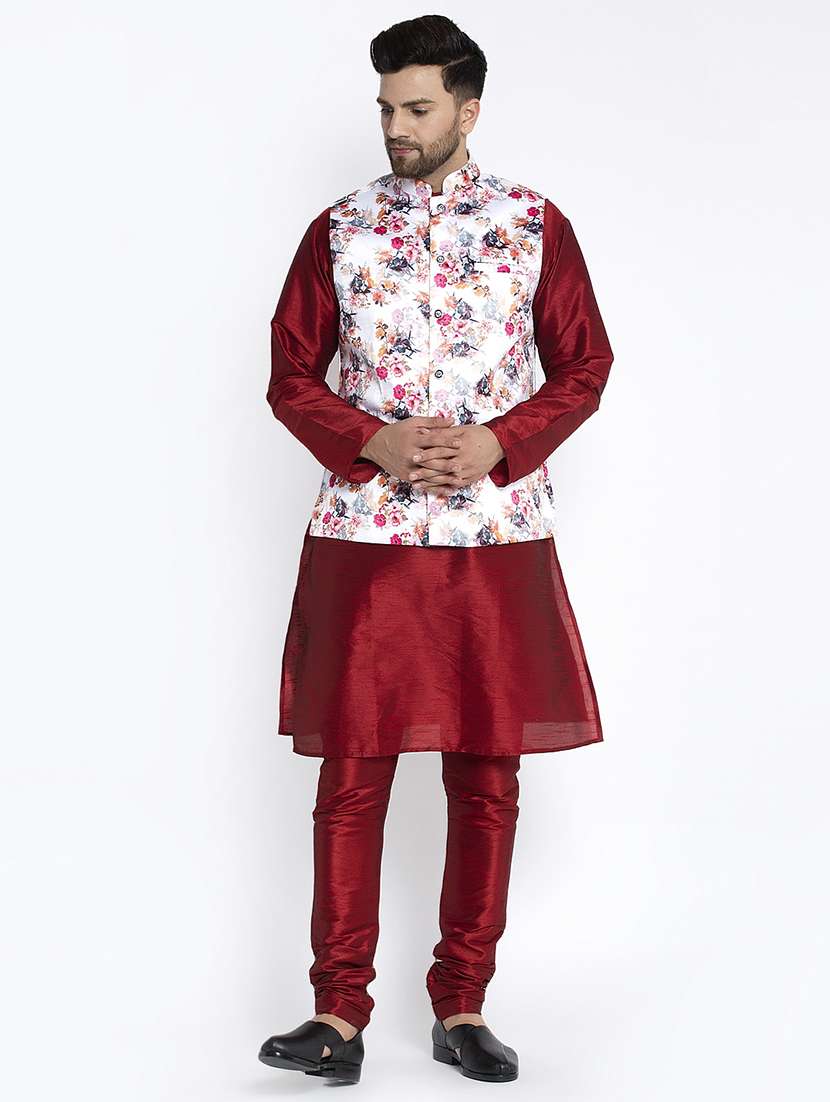 - » maroon solid kurta pyjama with printed nehru-jacket