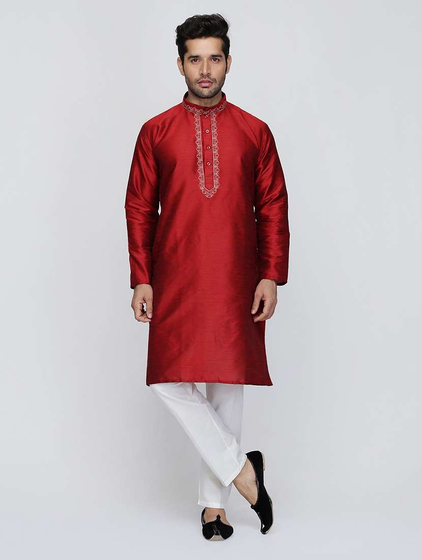 - » men solid mandarin neck kurta with trouser ethnic wear set
