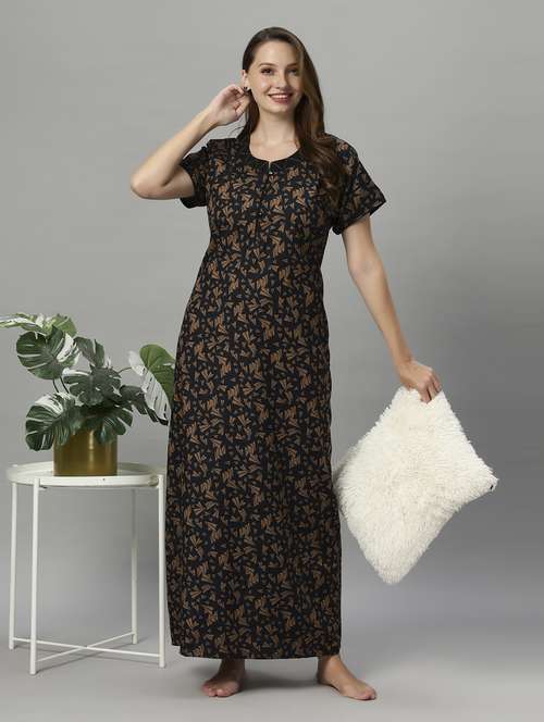 Elevate your loungewear collection with Quira's Women's Leaf Print Gown in a stunning maroon hue. Made from high-quality POLLY COTTON, this gown offers a soft and breathable feel, perfect for all-day comfort. The half sleeves and round neck design add a touch of elegance, making it suitable for casual lounging or as cozy nightwear. With a regular fit and a long length for added coverage and warmth, this gown is ideal for those relaxing moments at home. Whether you're unwinding after a long day or simply enjoying your downtime, Quira ensures you do so in style and comfort.