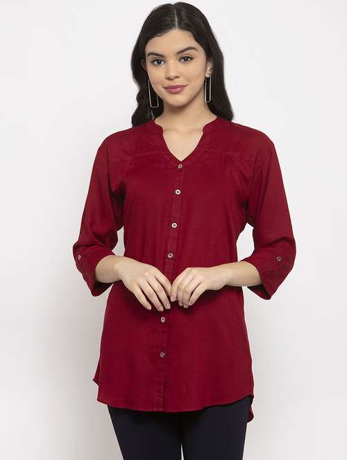 - » maroon rayon asymmetric shirt