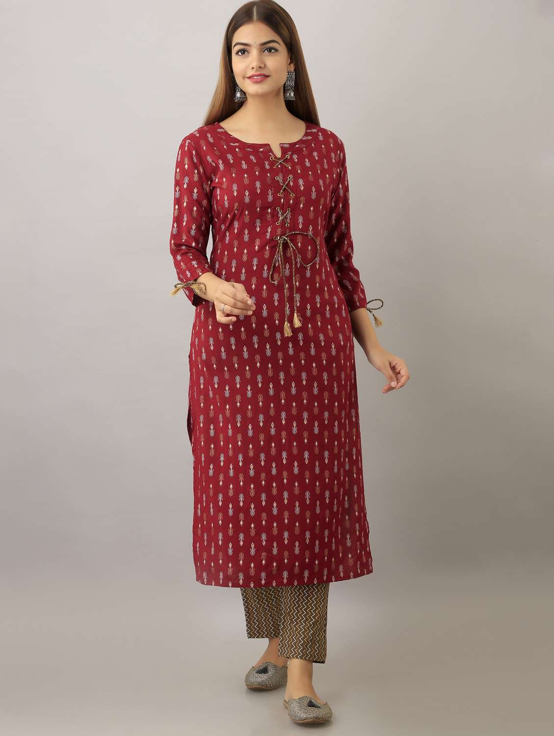 - Grab this beautiful kurta made up of rayon fabric featuring notch neck designs.