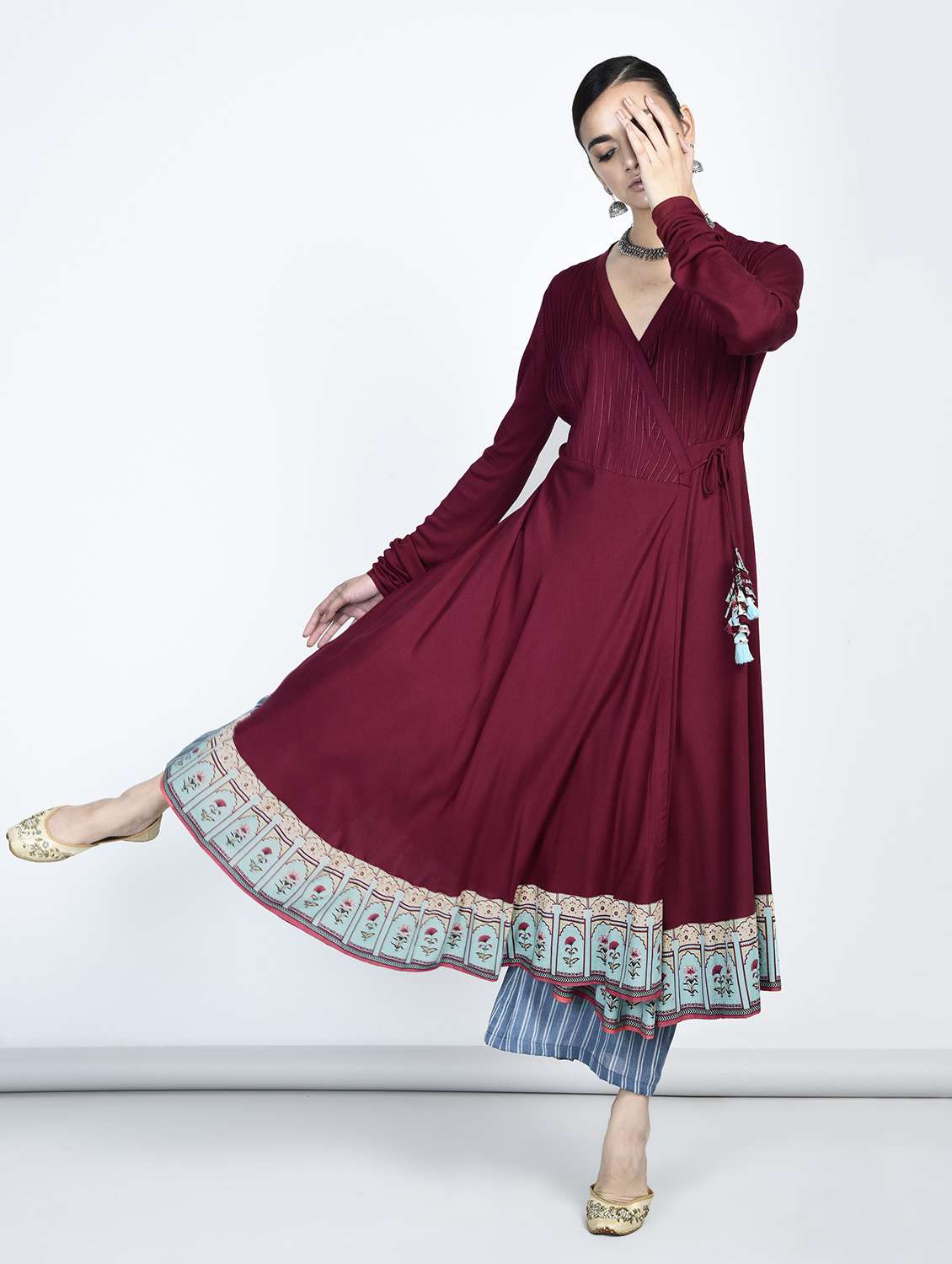 angrakha kurta with printed hemline