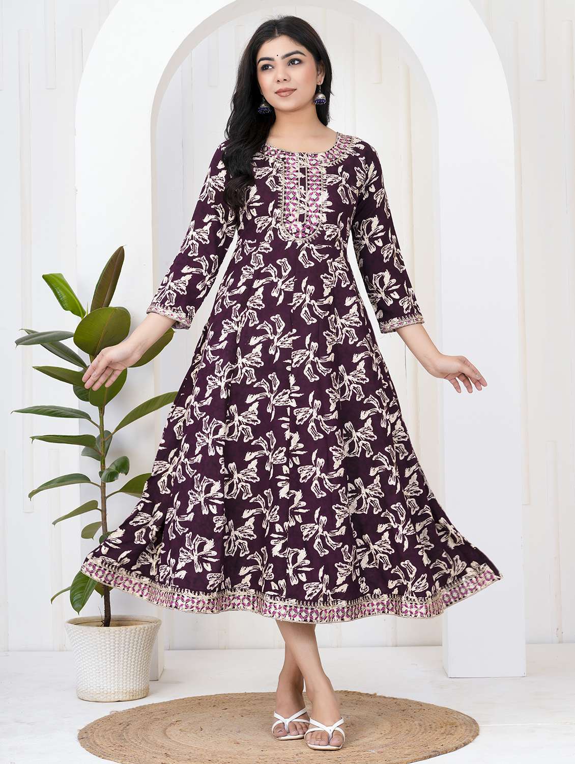 women floral three quarter sleeve flared ethnic dress