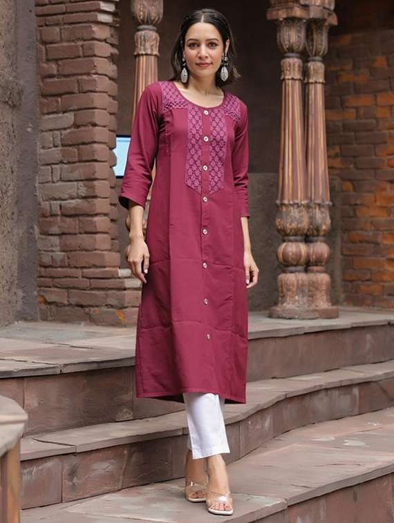 - » women solid three quarter sleeve straight kurta