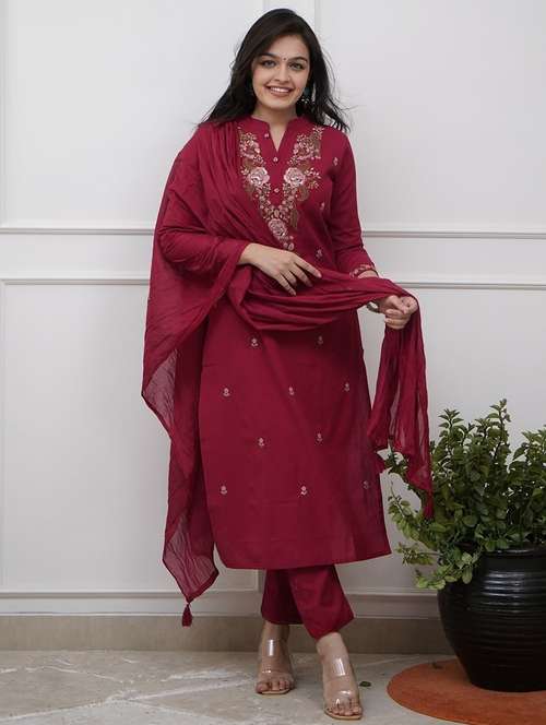 - Find gorgeous sets of ethnic wears in trending designs in maroon colors suitable for festive wear of occasions.