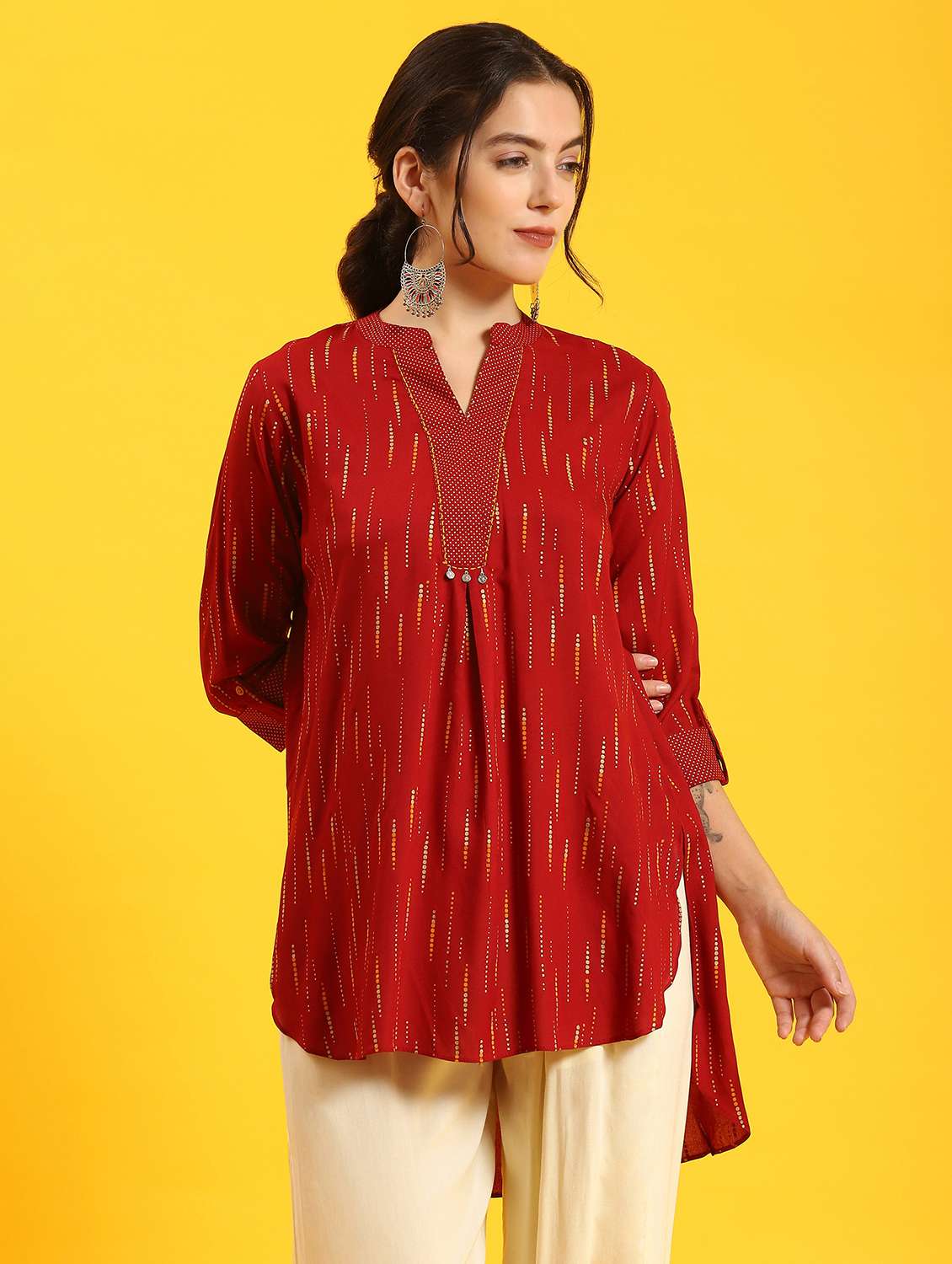 women maroon rayon high low tunic
