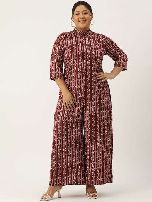 women mandarin neck printed full leg jumpsuit