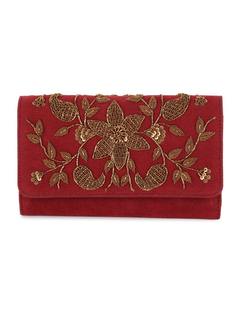 - » maroon embroidered regular clutch