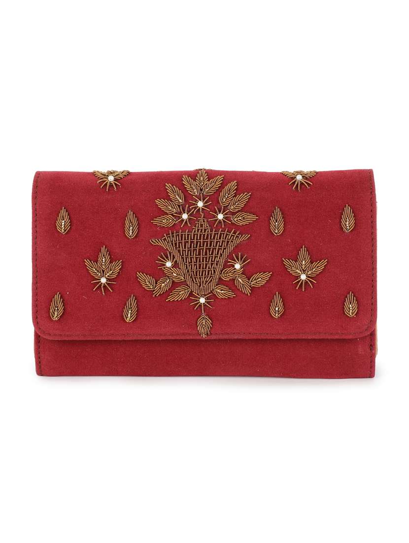 - » maroon embroidered regular clutch
