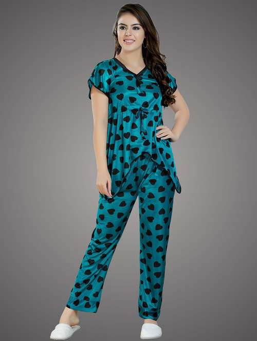 - After a long tiring day, slip into something homely, shop for the all-new collection of nightwear sets for ladies in FREESIZE sizes and gorgeous blue designs and colors.
