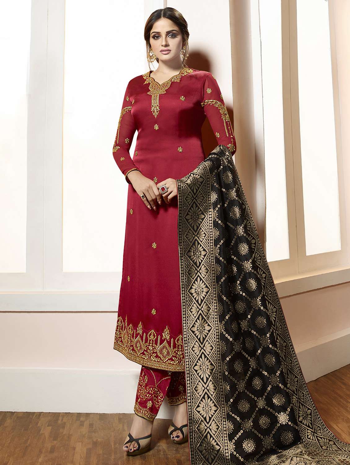 - » embroidered unstitched straight pant suit