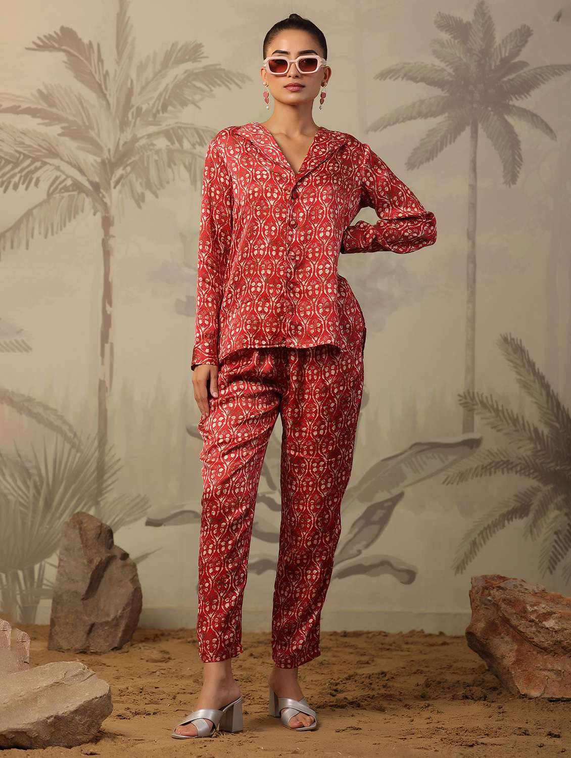- » women red printed shirt collar co-ord sets