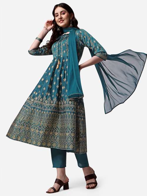 - Browse through the latest range of ethnic sets for women with tailored sleeve designs with traditional works.