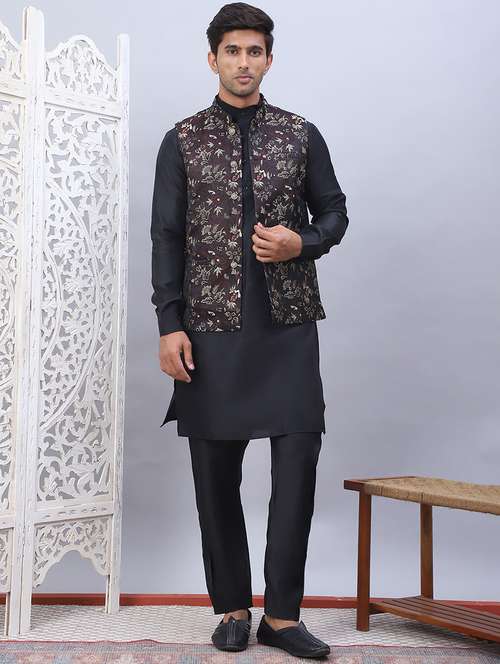 - » men embroidered kurta pyjama with jacket ethnic wear set