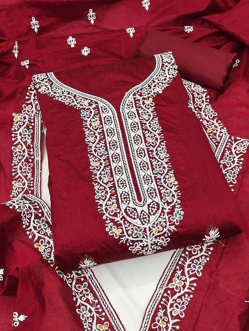 - Look ultra gorgeous in unstitched suits from Peachmode and grab these beautiful suits in maroon colour.
