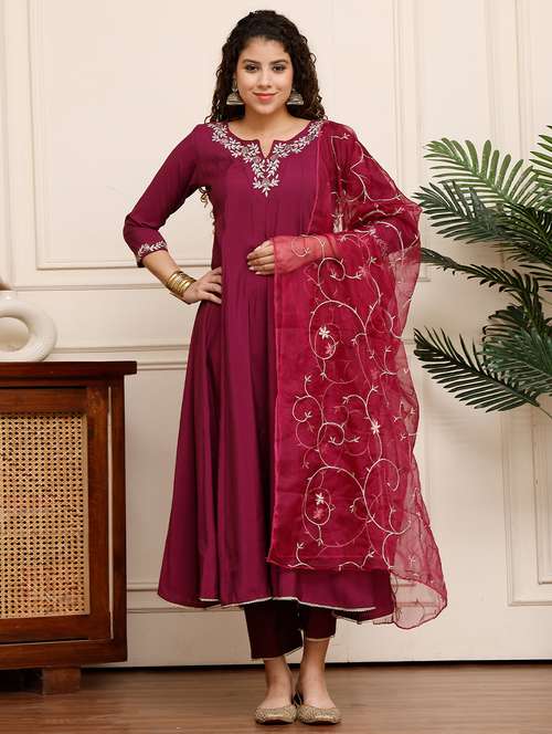 - Find gorgeous sets of ethnic wears in trending designs in maroon colors suitable for festive wear of occasions.