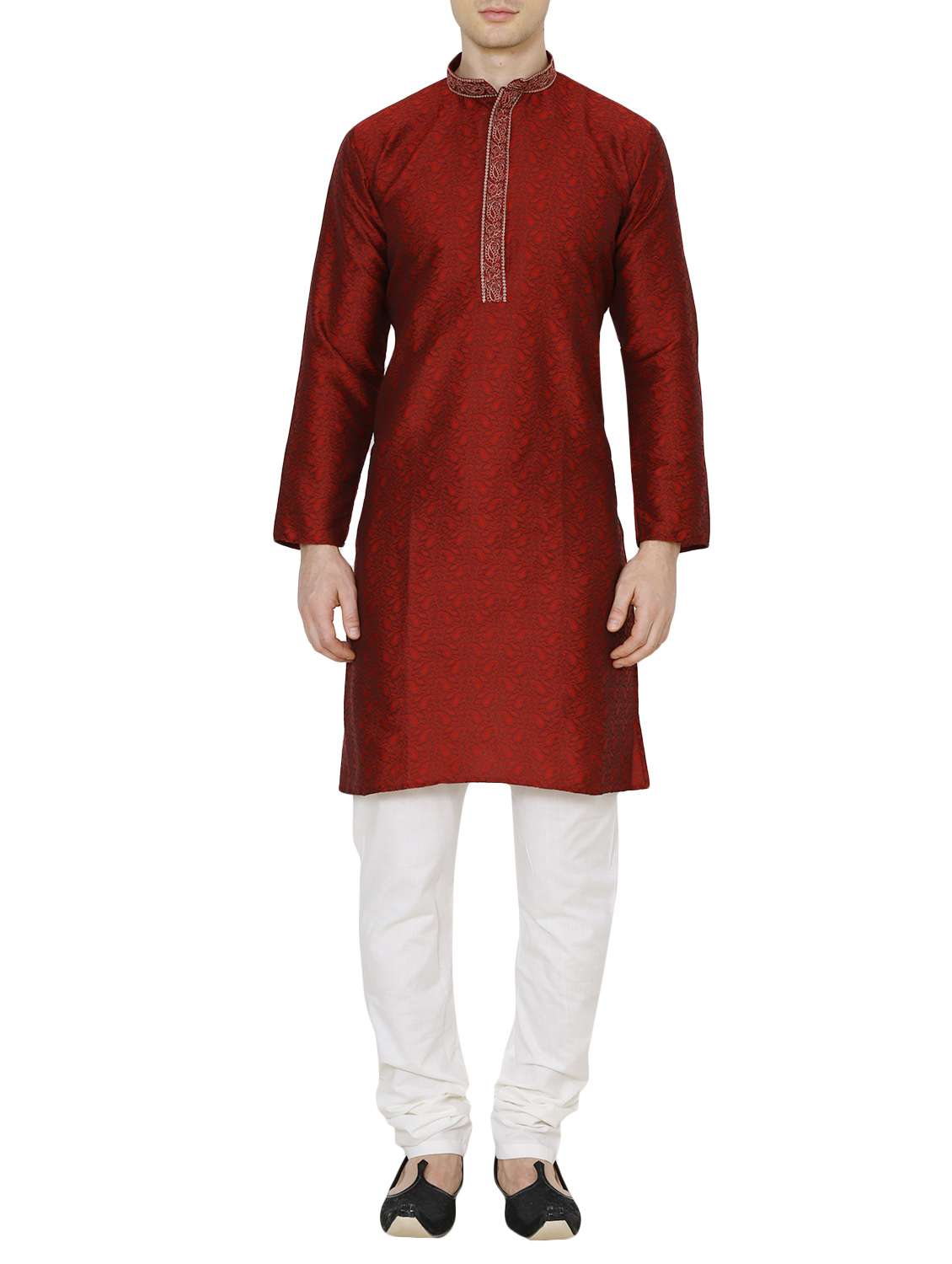 maroon silk blend kurta pyjama set - 13882624 - Very Small Image - 1