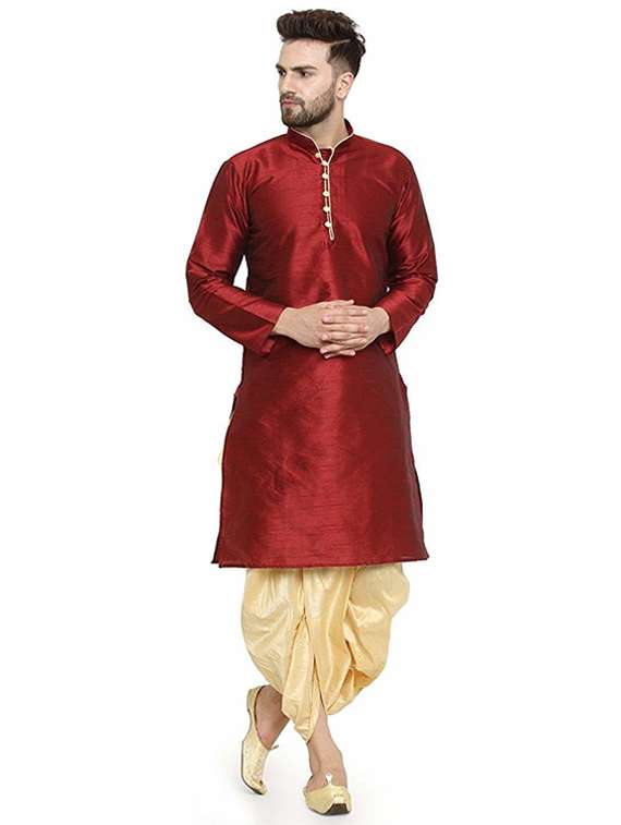 - » men solid mandarin neck dhoti kurta ethnic wear set